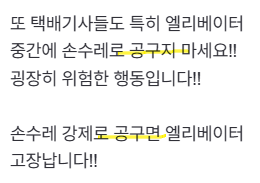 입주민이 배송구역까지 물건이나 음식받으러 가는게 불편하면 배달주문 안하기를 권장하면 되고요.